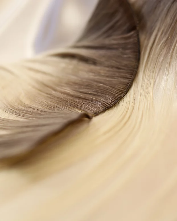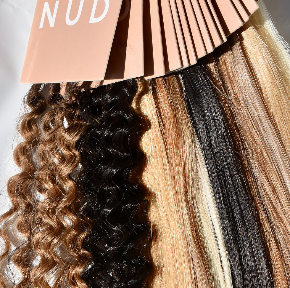NÜD hair extensions have been thoughtfully crafted in varied textures and tones in 4 application methods; The Naked Weft, The Body Weft, Stripped I-Tips, and Bare Tapes.